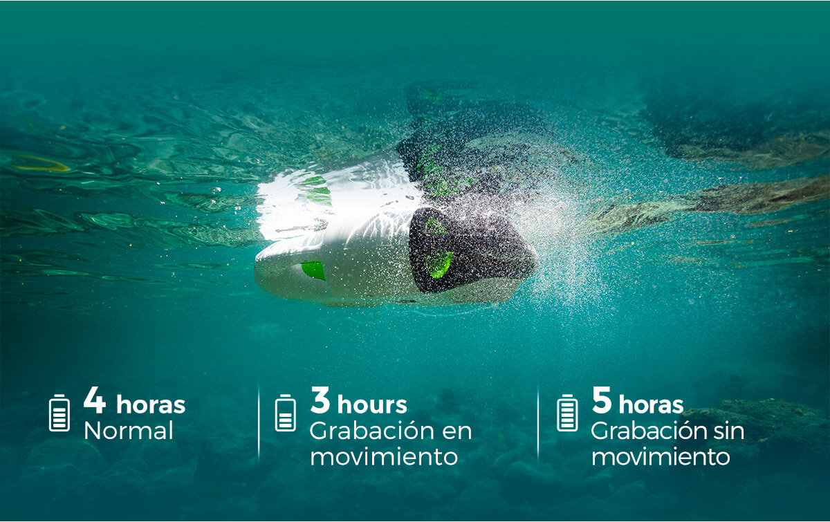 Al combinar una batería de gran tamaño con un diseño de motor de desvío altamente eficiente, el BW Space Pro puede funcionar de forma continua hasta 5 horas con una sola carga, lo que facilita la realización de exploraciones submarinas más avanzadas.